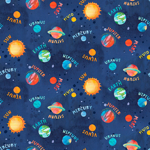Blast Off! - Solar System Fabric Quilt Panel