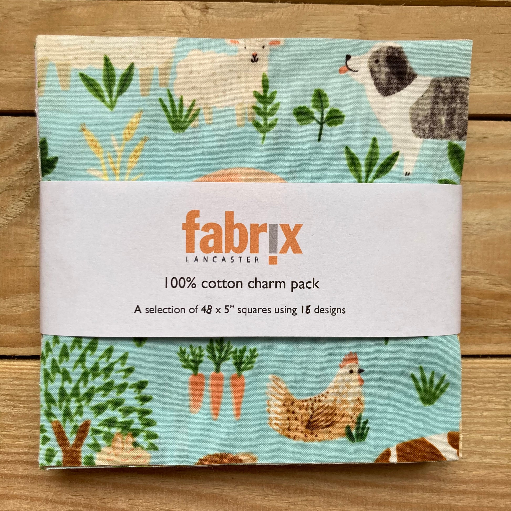 The charm pack contains 16 designs - 3 x 5” squares in each design - 48 squares in total.